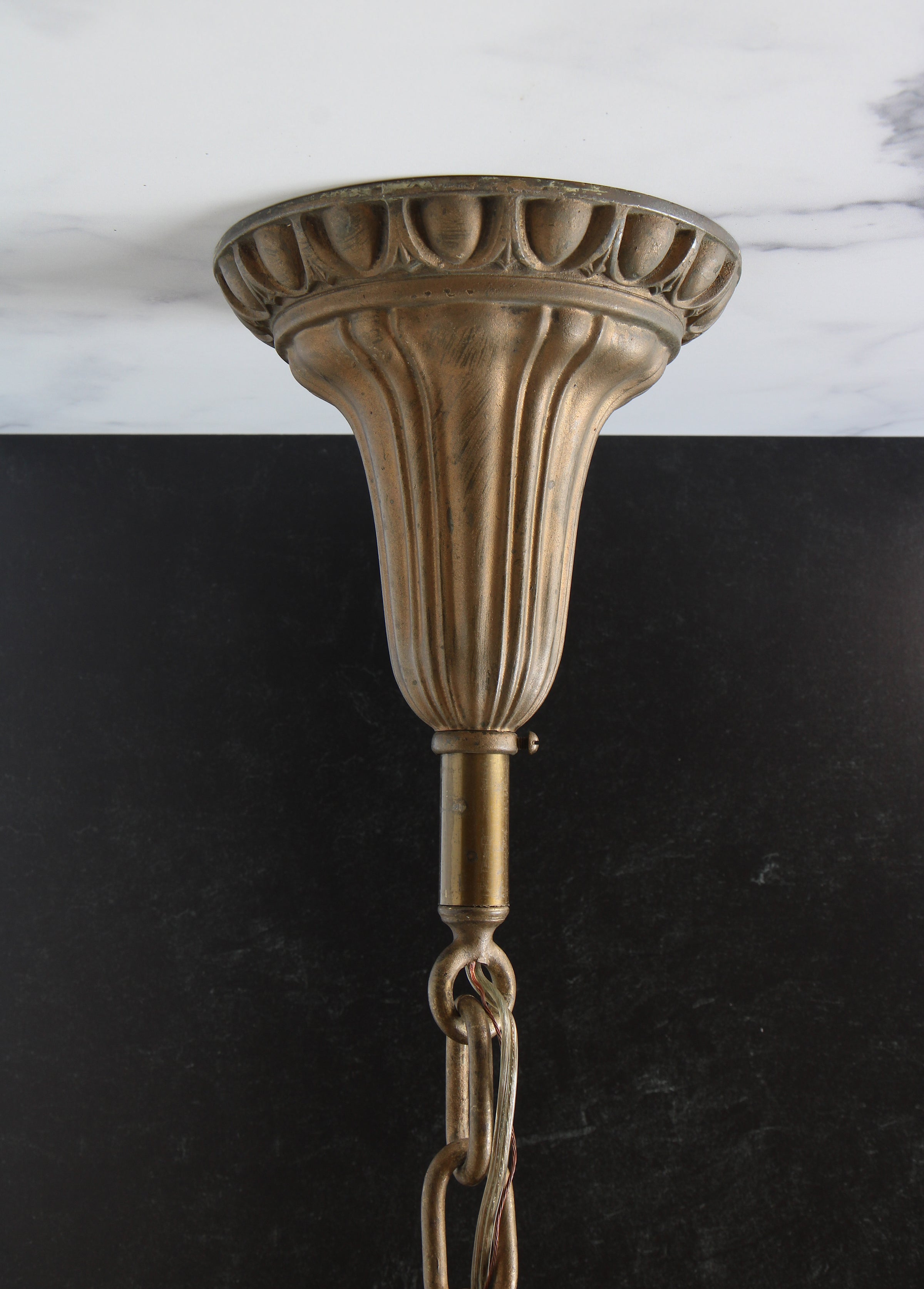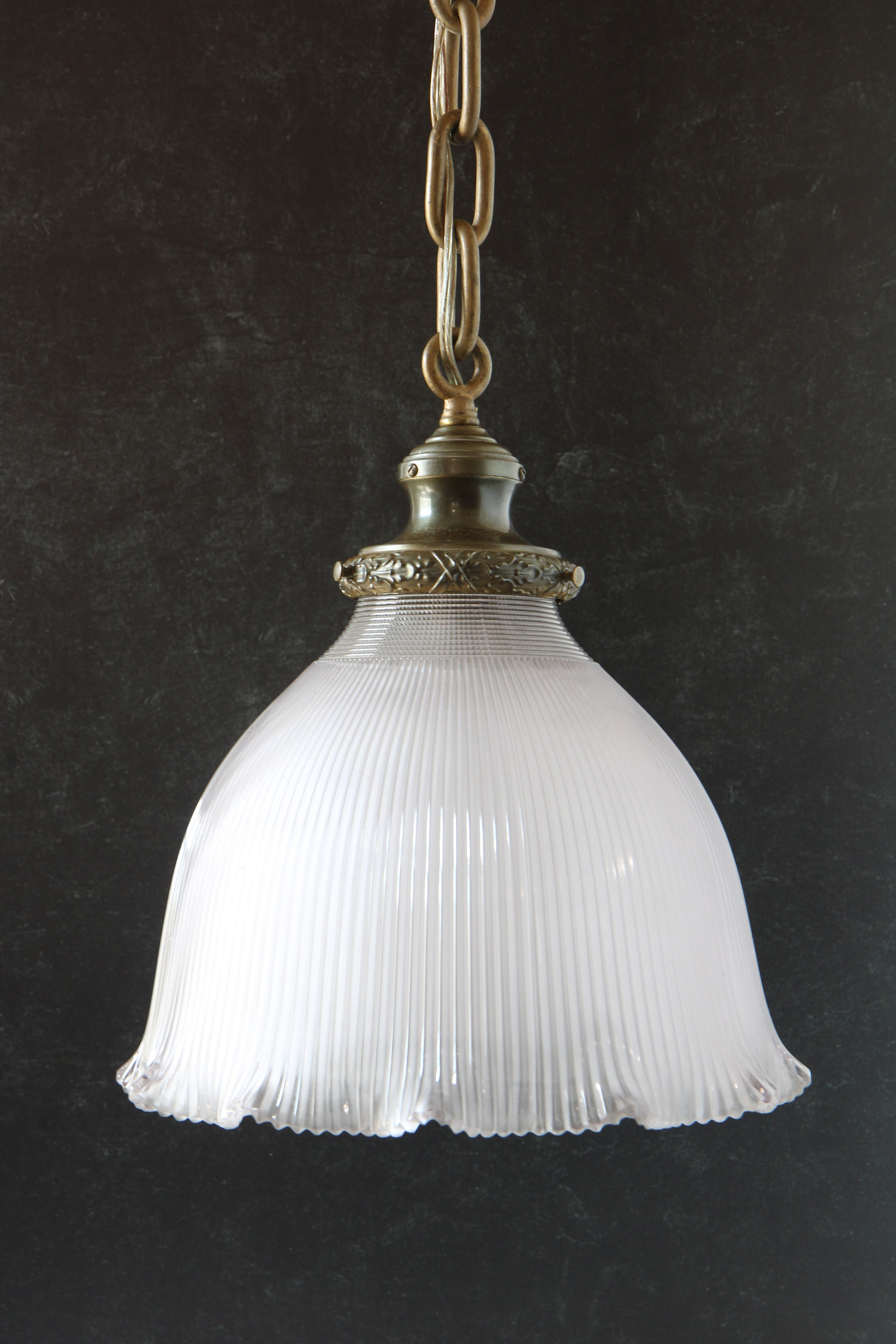 During our trip to South Dakota, we stumbled upon a beautiful vintage pendant. The fixture was originally from a Deadwood, South Dakota casino and features a brass canopy, loops, and holder. The steel chain has a brass finish, and the lighting is enhanced by an authentic vintage Holophane glass shade. While keeping the vintage charm intact, we updated the fixture to meet current electrical standards. If this fixture could talk, imagine the stories it could tell.